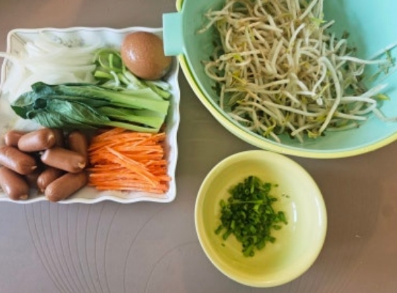 1호는 멍게비빔밥을 주문했는데.. 2호는 멍게를 싫어한다 이럴땐 정말 난감하다~ 그냥 하나의 요리로 끝낼수 있는 상황이 아니니... 1호 주문하니 2호도 주문하는 메뉴는 볶음면! 아~~~ 냉장고를 뒤적뒤적~ 비엔나소세지와 숙주나물이 보여서 다행~ 바로 스타뚜~~ GO GO~