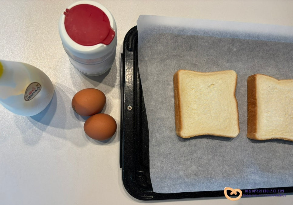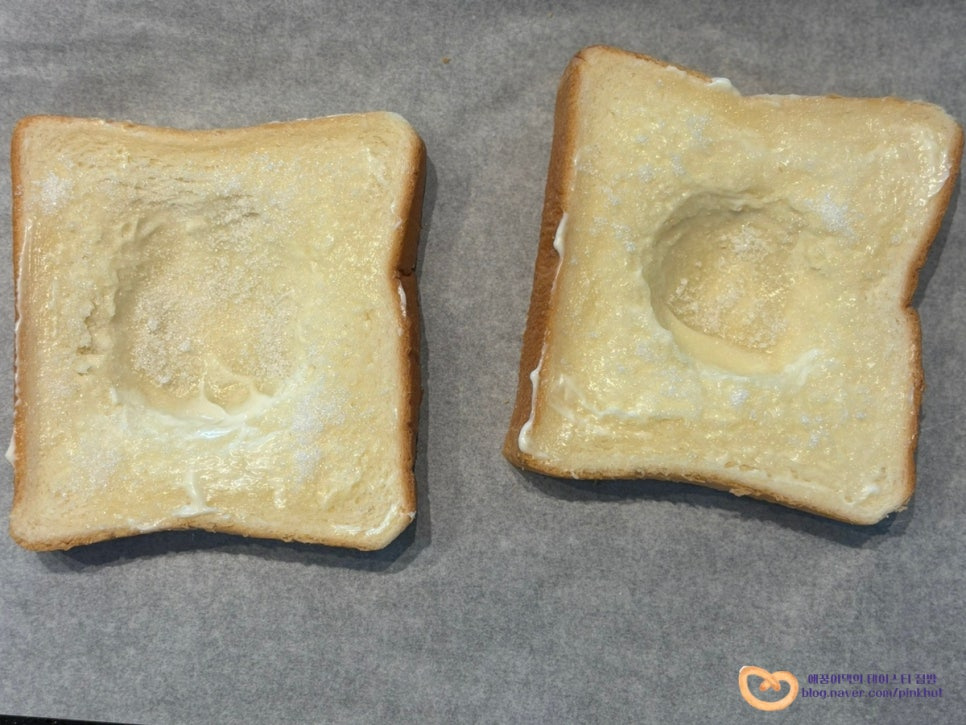 미리 종이호일을 깔고 그 위에 식빵을 올려주세요
