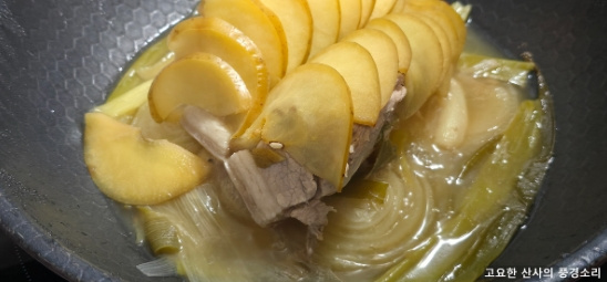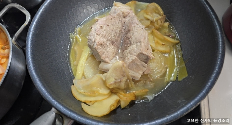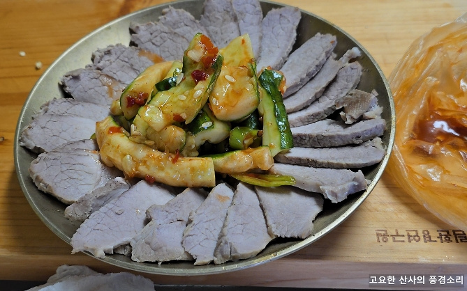 추석이 다가오면 가족과 함께 먹을 음식을 준비하게 됩니다. 오늘은 배우 김강우 씨가 편스토랑에서 선보였던 무수분 사과수육을 따라 해 보았습니다. 사과의 은은한 향이 배어 담백하면서도 촉촉한 수육, 그리고 곁들임 반찬으로 상큼한 오이탕탕이까지! 풍성한 명절 상차림에 잘 어울리는 레시피랍니다.