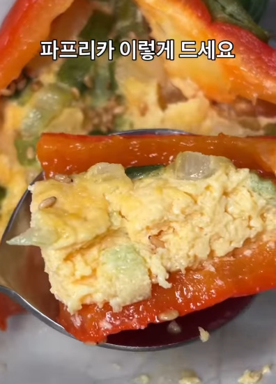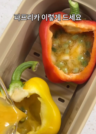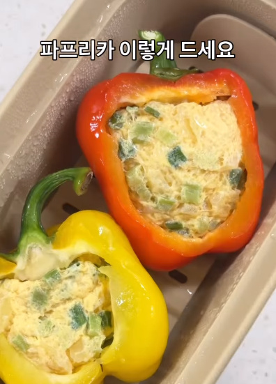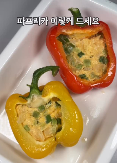 파프리카는 반으로 잘라 씨를 제거하고 사용했어요.