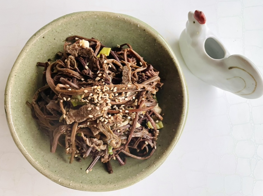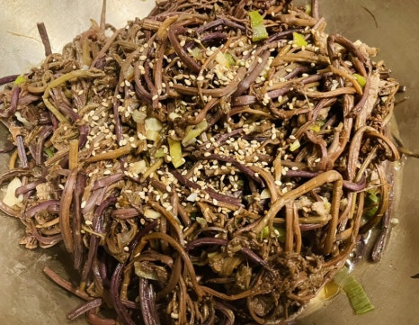 고사리 나물이 은근 고급스러운 요리인데 아마 고사리를 뜯고 말리고 불리고 데치고 볶는 그 과정 속에 그 긴시간이 고사리에 고스란히 배어 들어 숙성된 맛이 나서 그런 건 아닐까 싶어요.