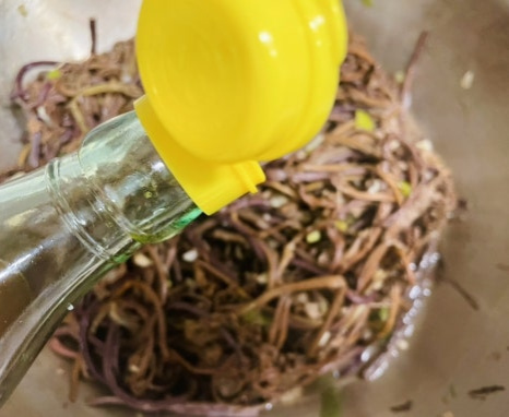 - 고사리 불릴 때 물을 새로 갈아 주면서 불려요.