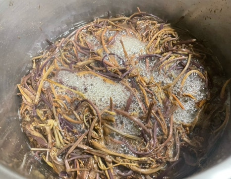 물을 넉넉하게 고사리가 잠길 정도로 냄비에 붓고 20분 정도 끓여 주세요.