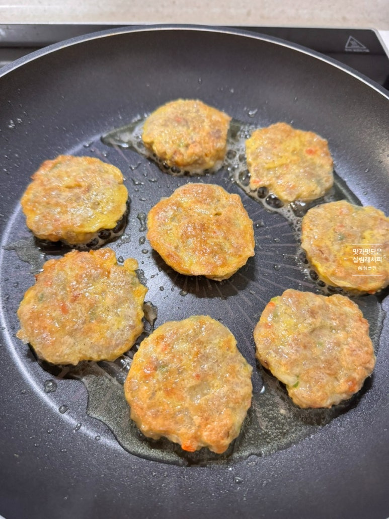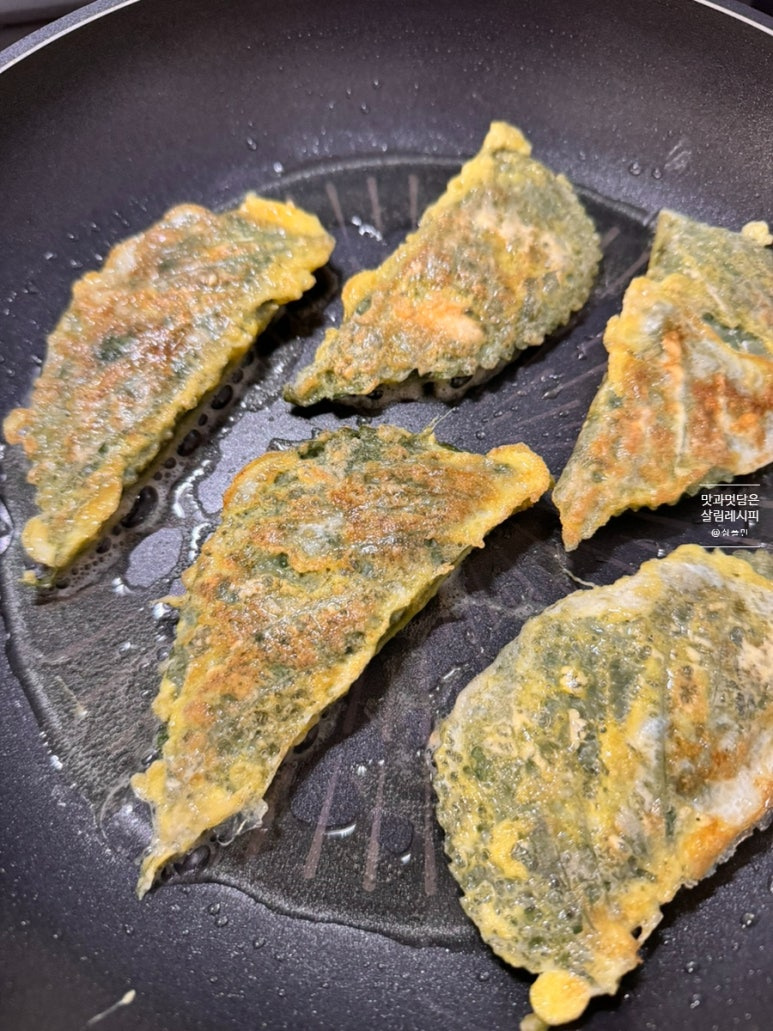 예열 한 팬에 기름 충분히 두른 뒤 앞뒤 중약불에서 앞 뒤 노릇하게 구워 마무리합니다.