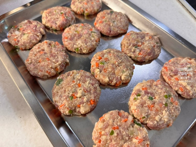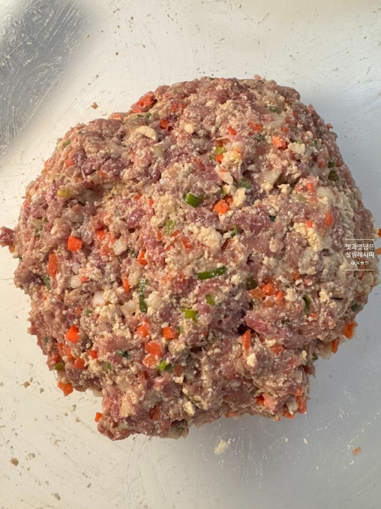 고기의 핏물을 잘 제거하고 두부도 간수를 충분히 빼주어야 질퍽하지 않게 만들 수 있고요. 야채도 곱게 다져주어야 재료와 분리되지 않으면서 서로 잘 엉기며 단단한 반죽으로 만들 수 있답니다.