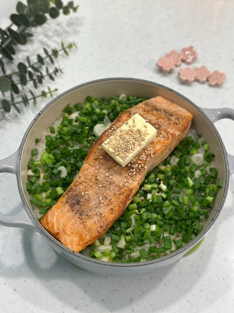 연어는 오메가 3가 풍부하고 단백질이 많은 생선으로 비타민 D도 풍부해서 심혈관 건강, 두뇌 건강, 피부미용에도 도움을 주는 건강 효능 식재료에요. 여름철 건강 보양식으로 먹기도 좋은 연어로 솥밥을 만들어서 먹으면 더운 여름 다른 반찬 없이 한 그릇에 영양을 채우기 딱 좋은 연어 솥밥이랍니다. 마늘과 쪽파로 은은한 향을 살린 연어 솥밥을 만들어 보도록 할게요 :)
