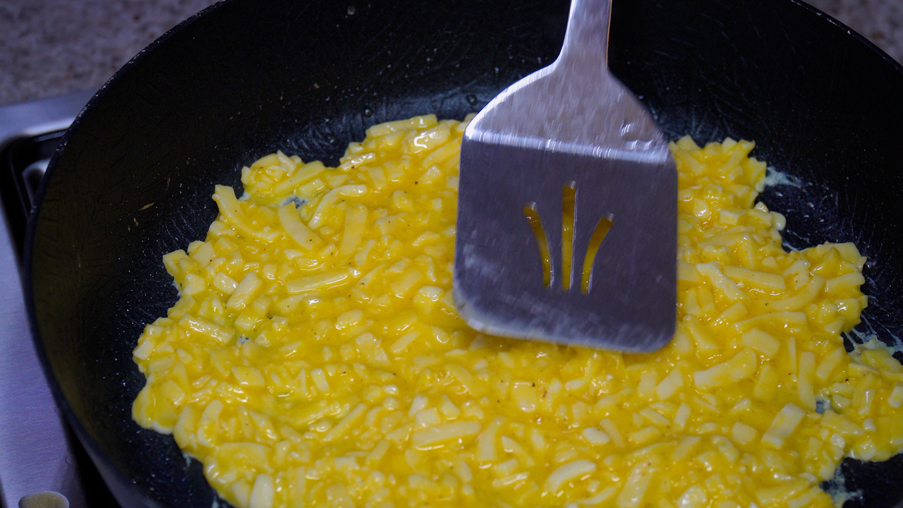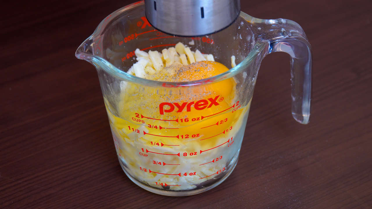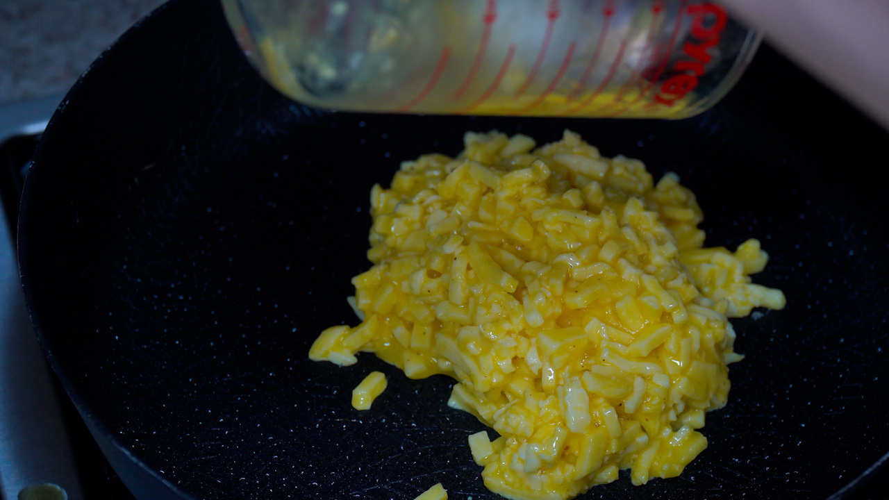 계란 2개, 모짜렐라 치즈 2 주먹, 소금, 후추