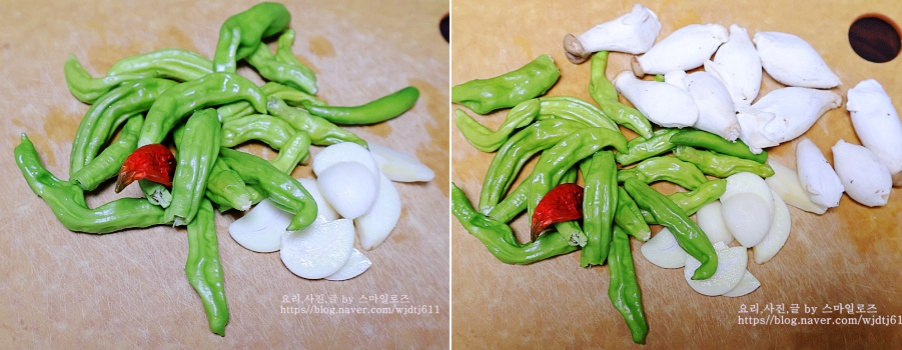 꽈리고추는 깨끗하게 식초 푼 물에 씻어 건져놓고
