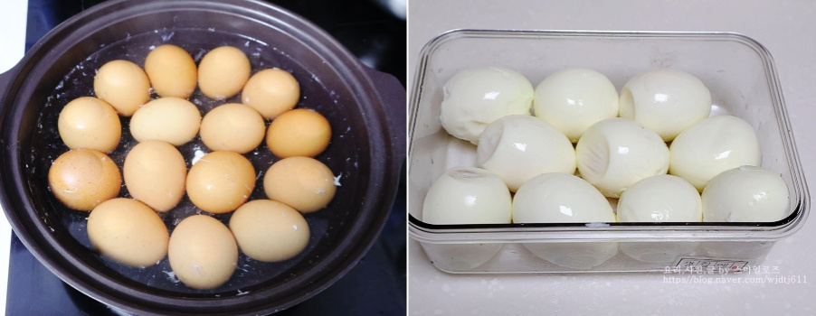 삶은 계란은 재빨리 찬물에 담가 열기를 식힌 후