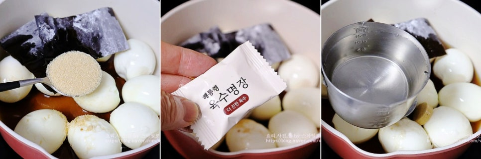 냄비에 계란을 넣고 다시마 작은 것 2장을 넣고