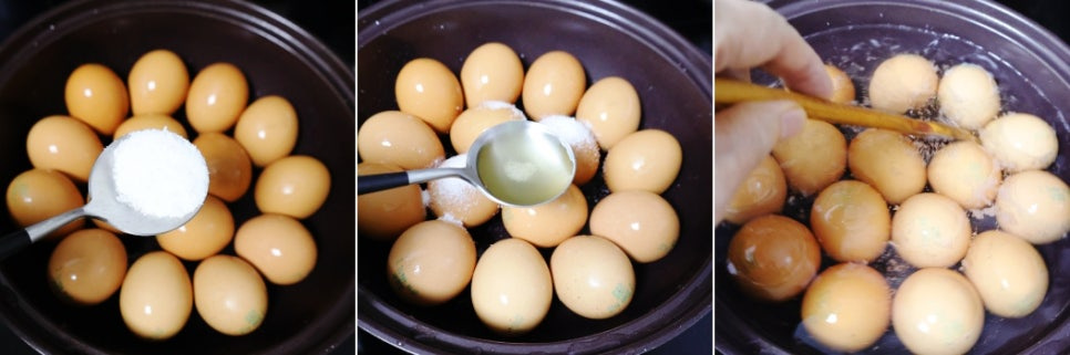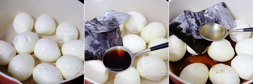 계란에 간장색이 들고 맛이 배어 들어요