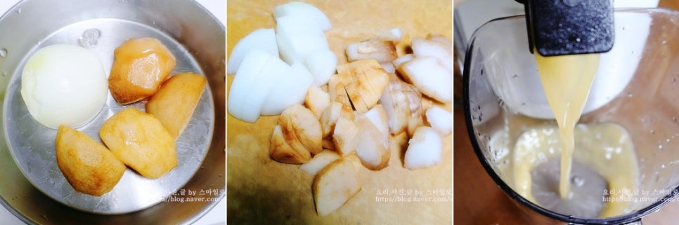 과일 사과, 배, 파인애플, 키위들 중에 한두 가지 착즙해서 LA갈비 양념장