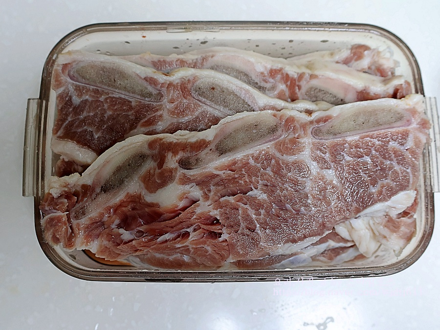 냉동된 갈비는 해동을 한 후 갈비가 잠길 만큼의 물에