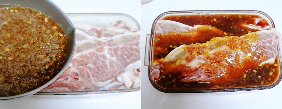 핏물 빼놓은 갈비에 양념장을 부어주면 la갈비 재우는 법 완성입니다