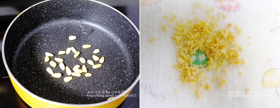갈비를 굽는 동안 냉동실에 있던 잣은 약불로 팬에 살짝 볶은 후