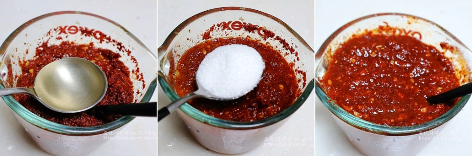 류수영 레시피에서 500g을 담을 경우엔 양념을 딱 반으로 준비하고
