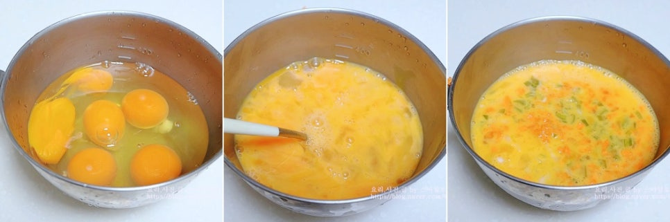 계란은 5개를 준비하고 당근과 대파 대신 고추를 넣고