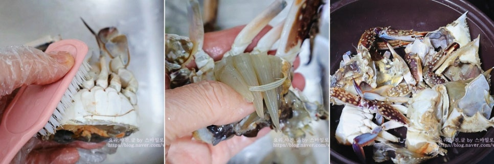 냉동꽃게는 절단이 되어있어 주방 솔로 구석구석