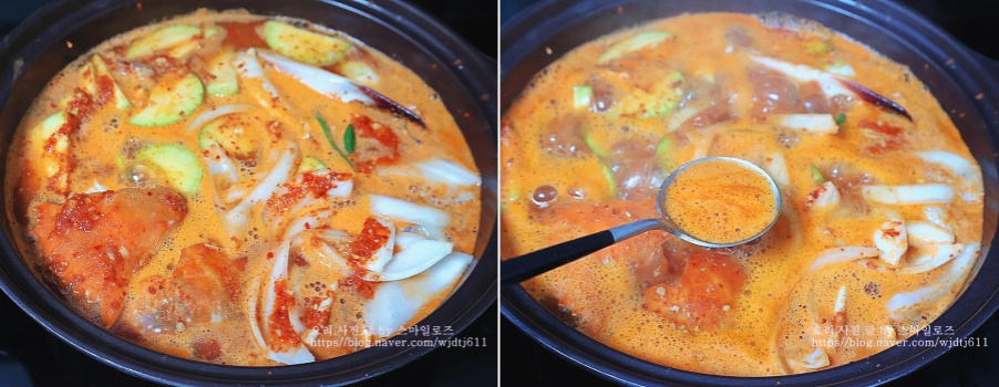 국물이 적으면 이때 물을 조금 추가해서 끓여도 됩니다