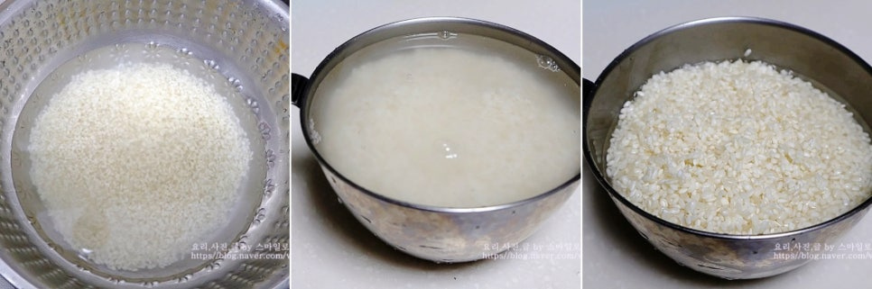 쌀은 미리 씻어 물에 담가 30분 이상 불려줍니다