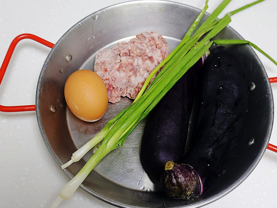 가지 2개와 소고기 다짐육과 쪽파 계란을 준비했는데요