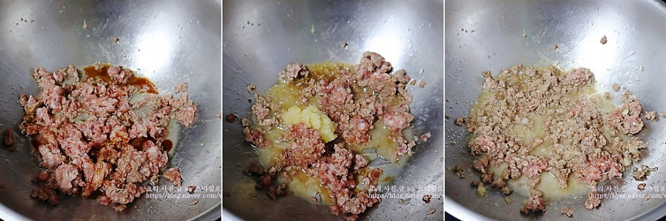웍에 올리브유 2스푼을 두르고 소고기를 넣고 볶으면서