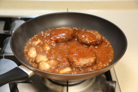 고기와 버섯은 중불에서 구워주고 함박스테이크소스를 넣은 후엔 약불로 줄인 후 끓여준다