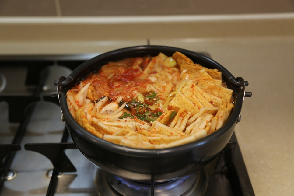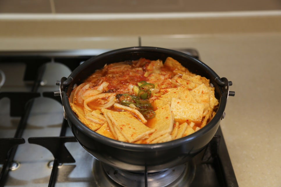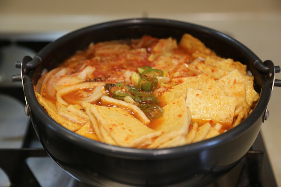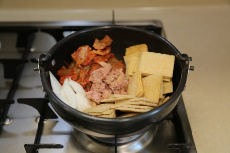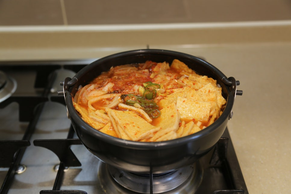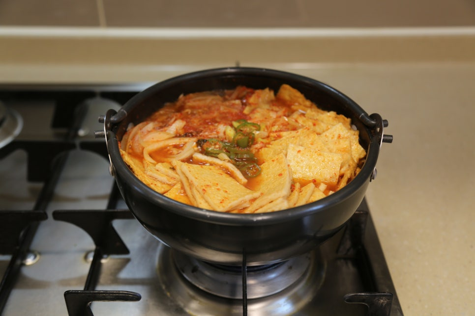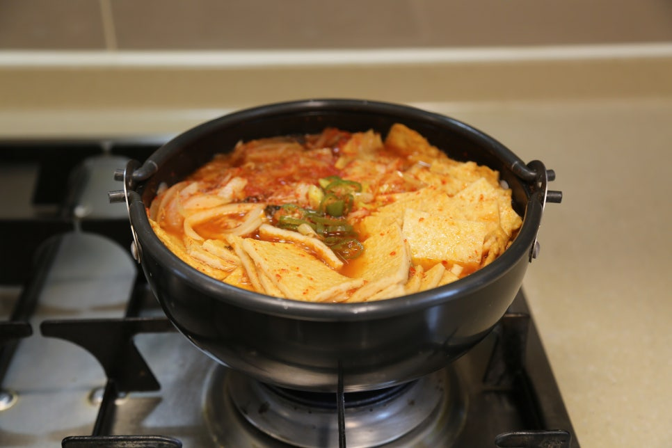 사각어묵 4장, 양파 1/2개, 대파 1/2대, 김치 300ml, 참치캔 85g, 물 400ml