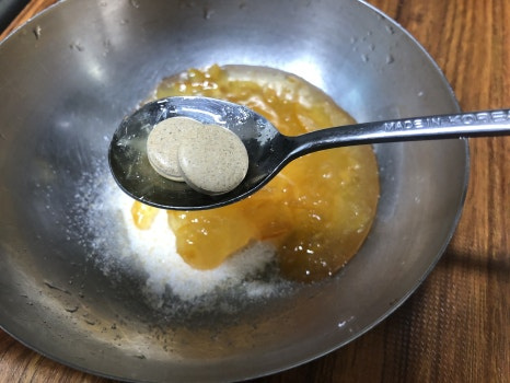 설탕(5스푼),유자청(8스푼),간장(14스푼,100ml),멸치코인육수(2개)