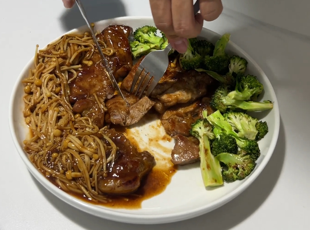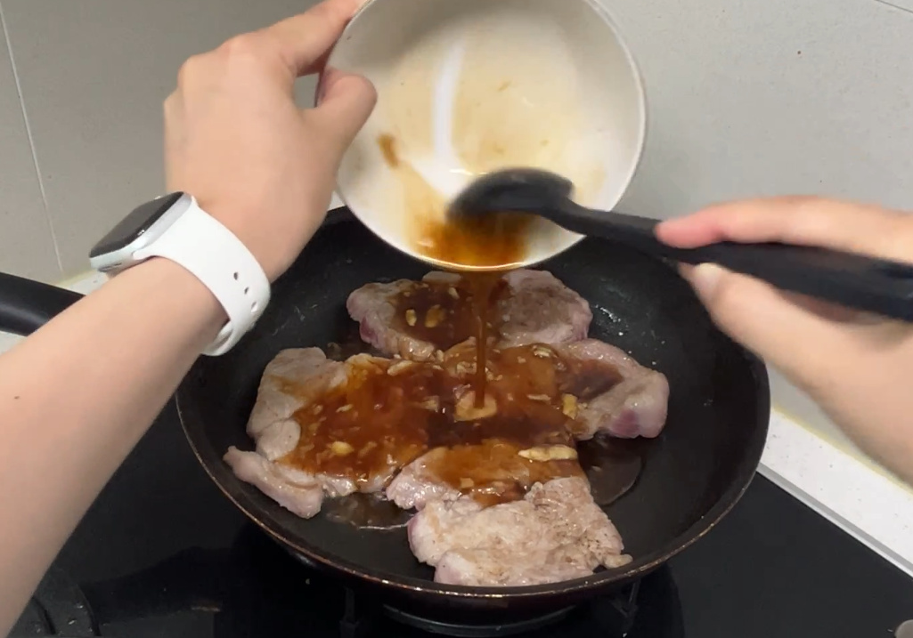 물 50ml, 올리고당 2, 맛술 1, 진간장 1, 돈까스소스 2, 굴소스 1/2, 다진마늘 1