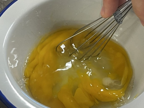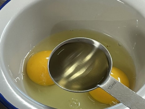 계란 2개와 미림1T를 섞어 준 뒤 계란말이를 해주세요.