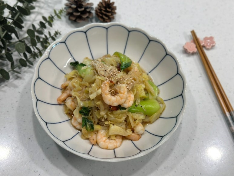새우 양배추 볶음 만드는 법 야식추천 원팬 볶음요리 만들기 굴 소스 새우볶음 레시피