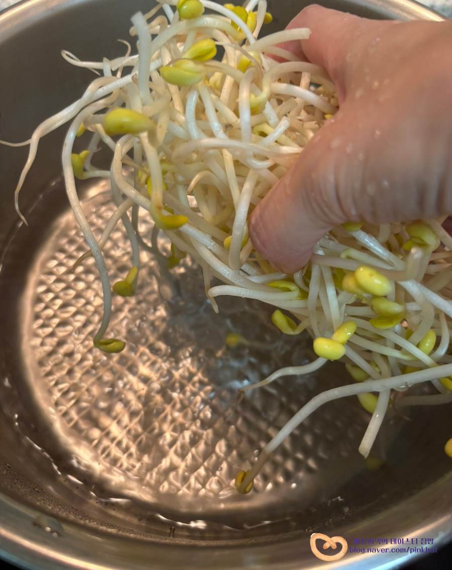 냄비에 물을 담고 팔팔 끓인 후에 물이 보글보글 끓으면 세척한 콩나물을 넣어주세요