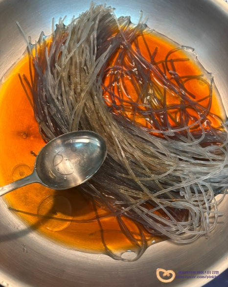 그 사이에 골고루 잘 불려진 당면의 모습이에요 :)