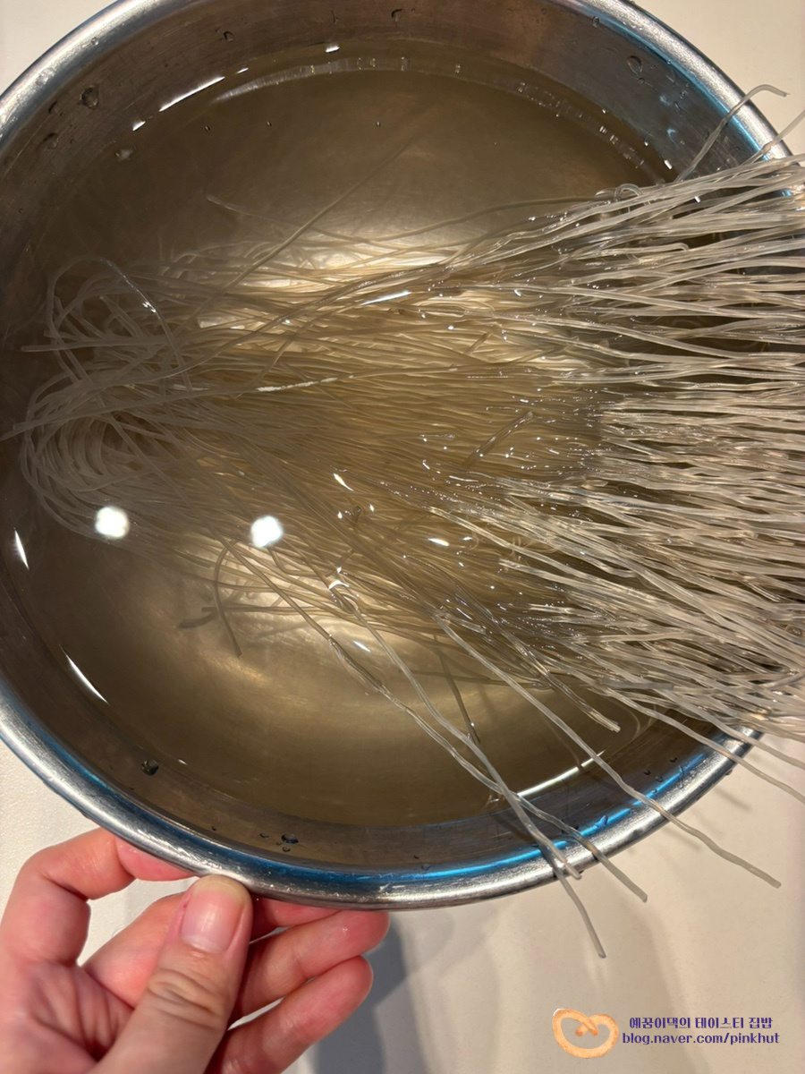 잡채 만들기의 경우 당면을 미리 불려주셔야 이따가 볶는 시간을 단축시킬 수 있고, 쉽게 불지 않아요.