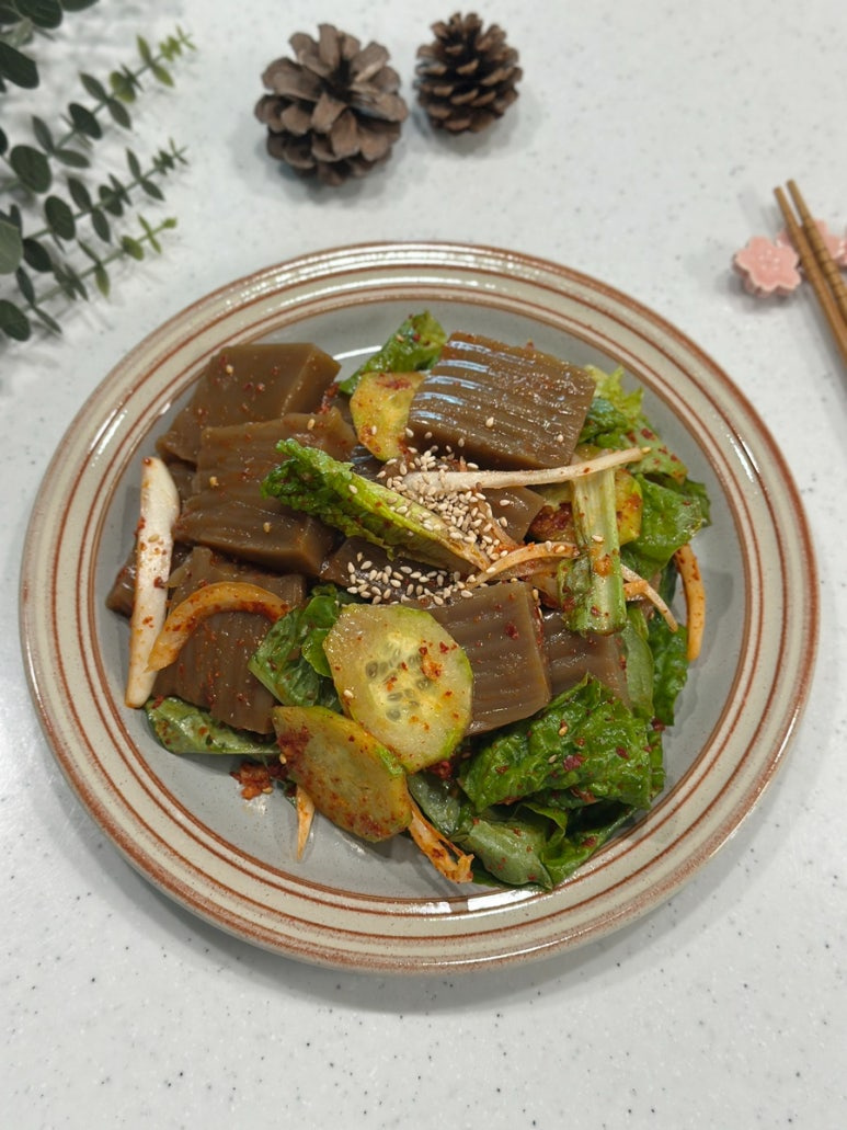 저희 어머님표 도토리묵은 정말 맛있어요! 작년 가을에 주운 도토리로 만든 묵가루로 탱글탱글 맛있는 묵을 만드셨는데 도토리 껍질을 일일이 손으로 깐 뒤 만든 묵가루라서 떫은맛도 없고 고소한 도토리묵이 정말 별미랍니다. 저도 묵가루로 만들어보았지만 어머님 솜씨를 따라가려면 아직 멀었지요. 맛있는 어머님표 묵으로 묵무침을 만들어서 더 맛있게 먹었어요! 상추와 오이와 함께 양념장에 휘리릭 무쳐내면 완성되는 간단 요리! 도토리묵 무침 양념장 레시피와 함께 만들어 보도록 할게요 :)