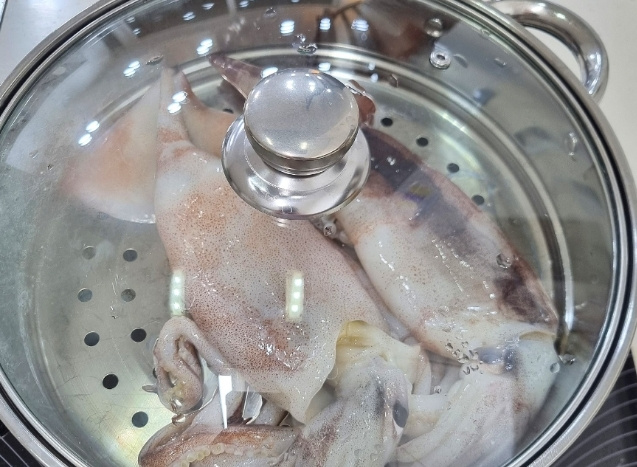 통오징어찜 시간 레시피 내장까지 고소한 생물오징어 통찜