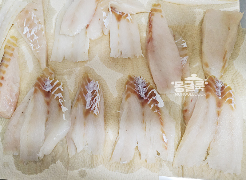 비린내를 더 잡고 싶다면 맛술 1큰술을 고르게 뿌려 주면 좋아요.