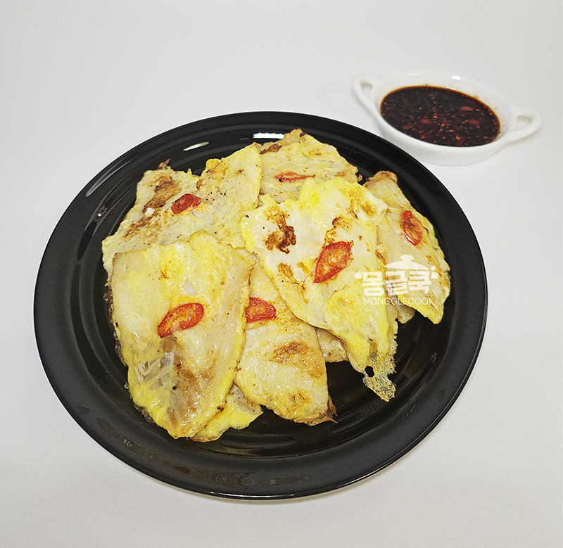 전용 코팅 팬이나 잘 달궈진 팬을 사용하면 들러붙지 않고 모양도 예쁘게 부칠 수 있어요.