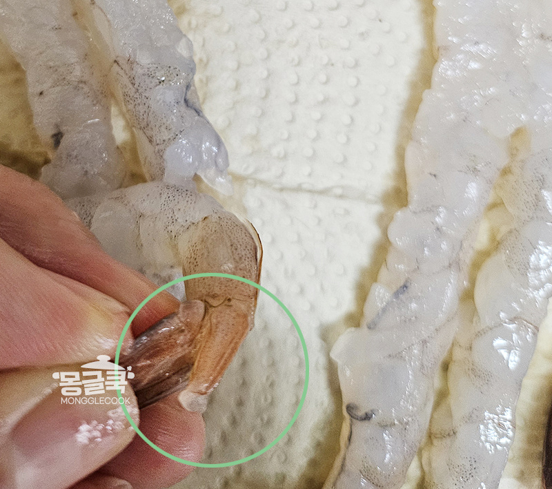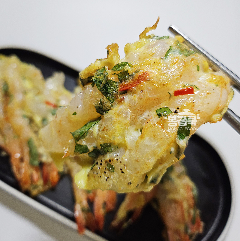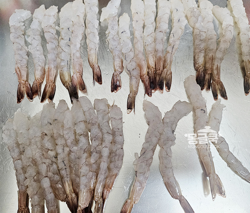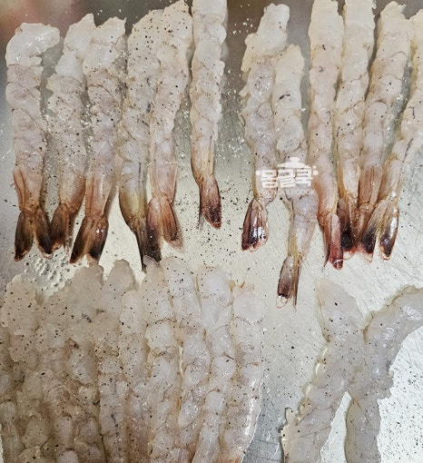 또한 새우전을 부칠 때 꼬리 끝의 물총을 그대로 두면 기름이 튀어 다칠 위험이 있어요.