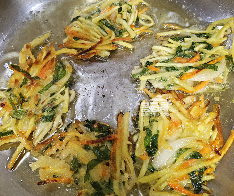 튀김이 노릇해지면 건재 내어 체반이나 키친타월에 올려 기름을 빼주세요.