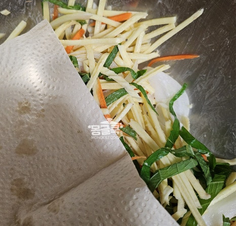 야채에서 물이 나오면 키친타월로 가볍게 눌러 수분을 제거해 주세요.