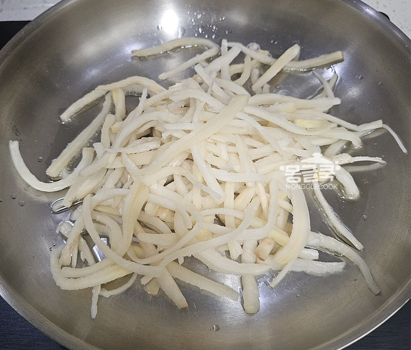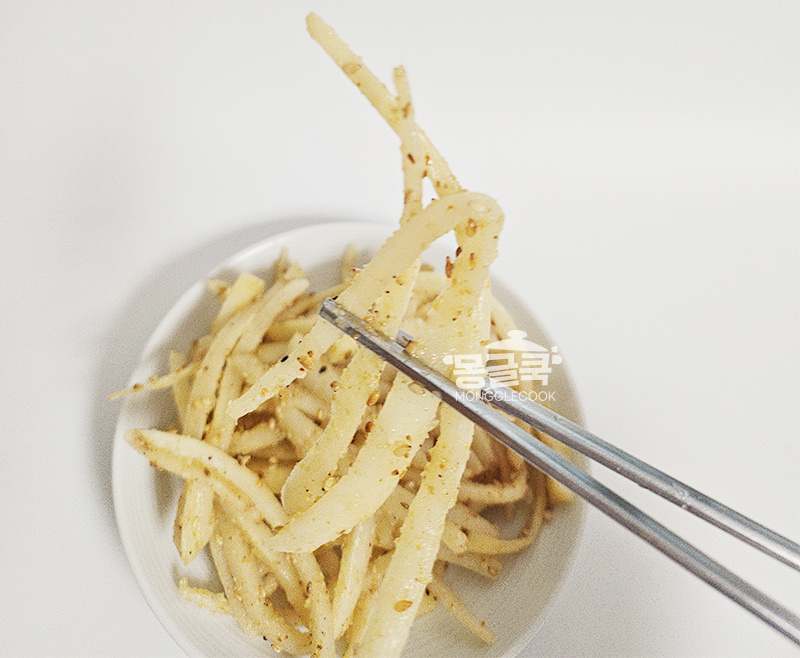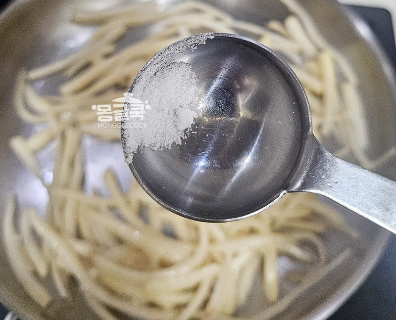 포인트: 설탕을 너무 많이 넣으면 도라지의 담백함이 사라지므로 꼭 한 꼬집만!