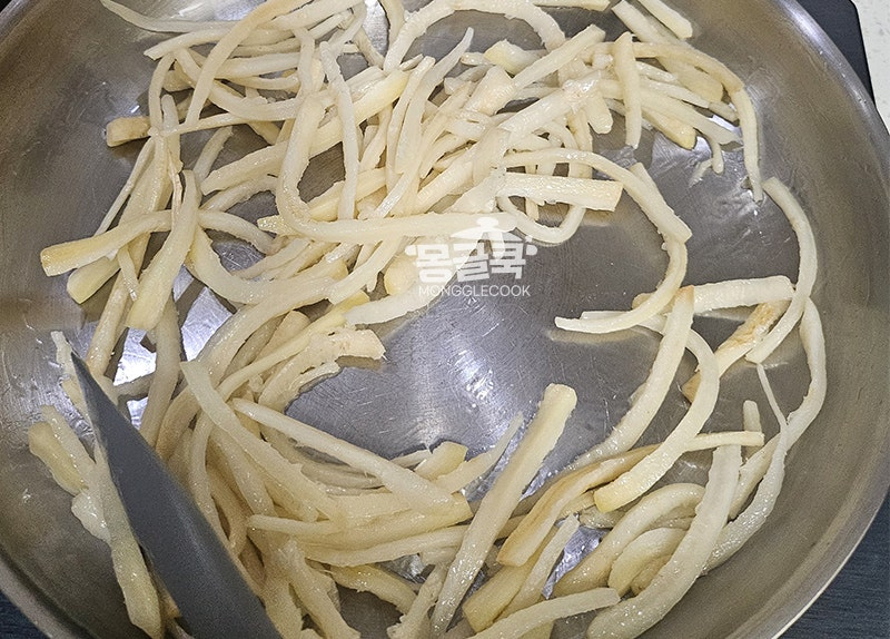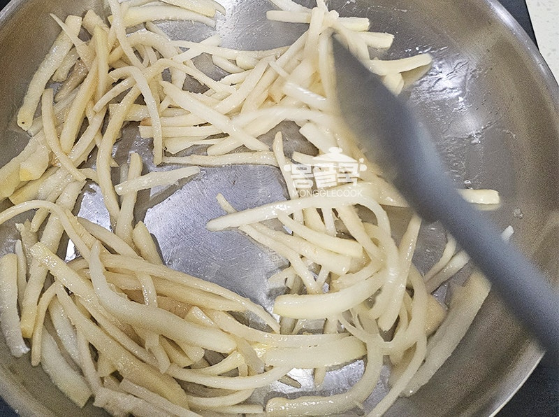 이때 설탕 한 꼬집을 넣고 20~30초 더 볶으면 쓴맛이 중화돼요.
