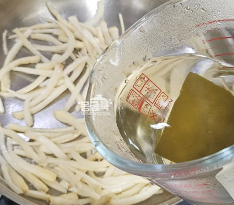 주의 : 물이 끓기 시작하면 바로 다시마를 건져 쓴맛 방지