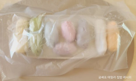 익반죽 되어 있는걸 자연 해동한거라 주물주물 잘 치대주세요.