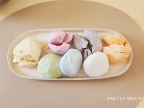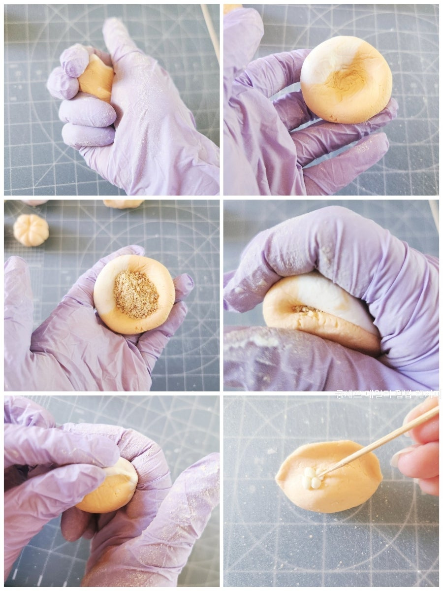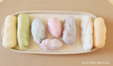 1)만들 소량을 떼어 낸 후 조물조물 둥글게 만들어 주세요.