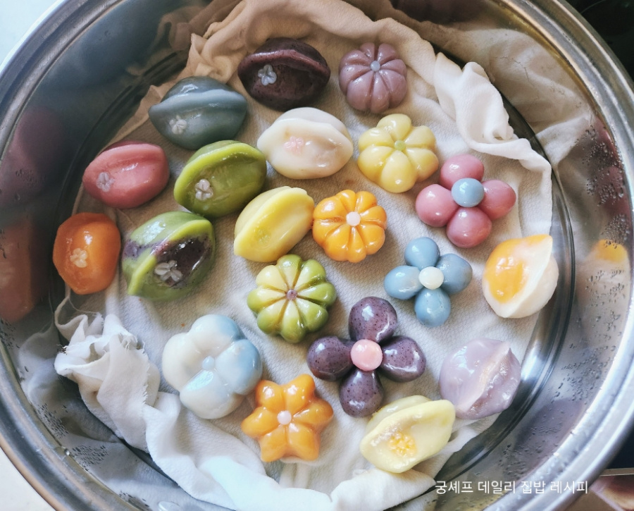 5)동글게 모양을 잡아 준뒤 테두리 반을 꼬집듯 모양을 잡아 주면 송편은 완성입니다.