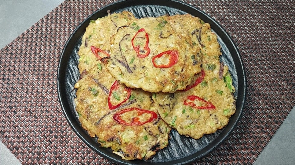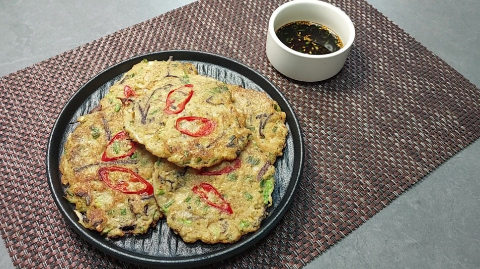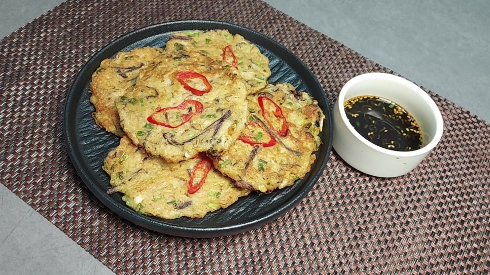 고소하고 은은한 녹두 향이 나는 녹두전이 완성되었어요.