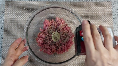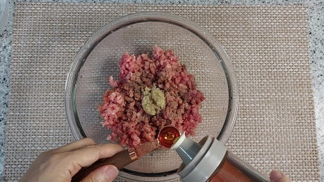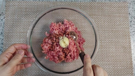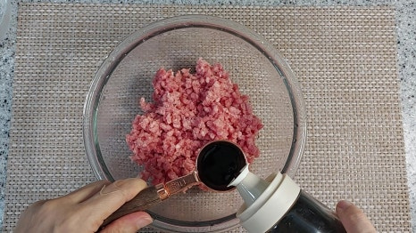 다짐 육에 양조간장, 마늘, 참기름, 후추로 밑간을 해주세요.